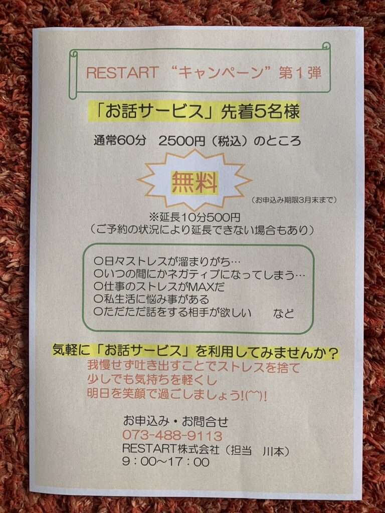 月灯想のサポートサービス「お話サービス」キャンペーン開始! 通常60分 2,500円(税込)のところ、先着5名まで無料(延長は10分500円、ご予約の状況によります) キャンペーン期間は3月末日までです。