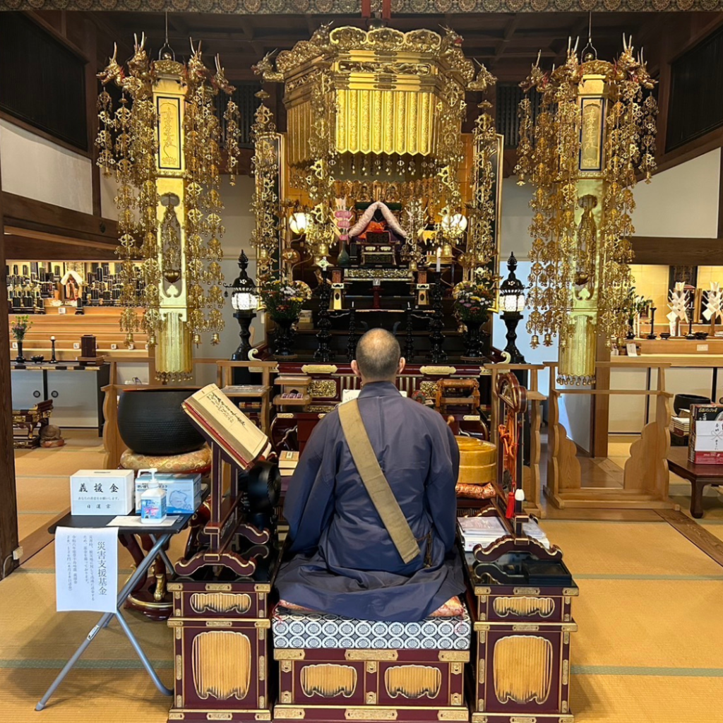 本堂でのお勤め